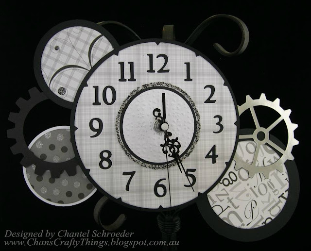 I Embossed the centre panel for a bit of texture and added stickles for bling on the face. I also used some foil for one of the gears which I think looks pretty cool.