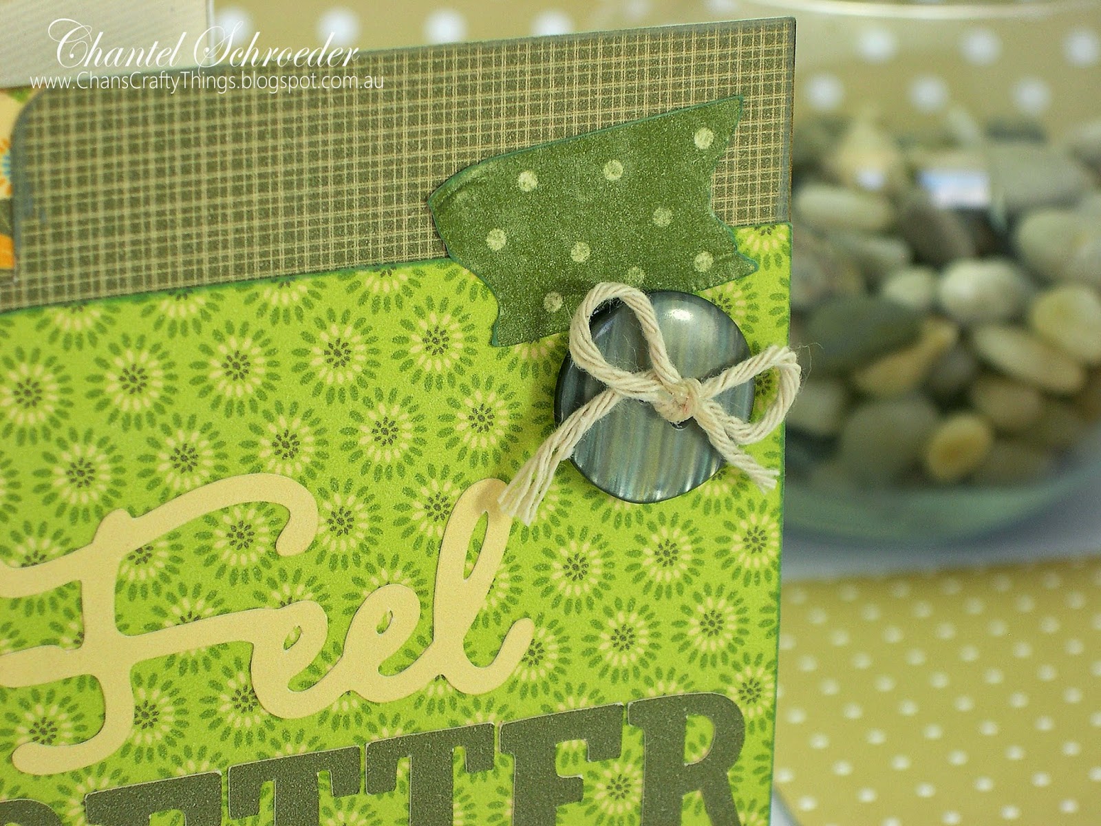 I ran the orange panel through my Bigshot, inked the raised edges and finished the card off with some old school baker's twine I found in the bottom of my kitchen drawer.