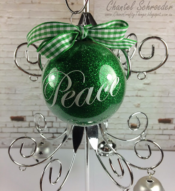It was my first time working with vinyl too! The glitter was a lot of fun but I wanted to try something else too. I filled the next one with fake snow and mixed in a bit of twine with the ribbon for a different look. I personalised for my hubby.