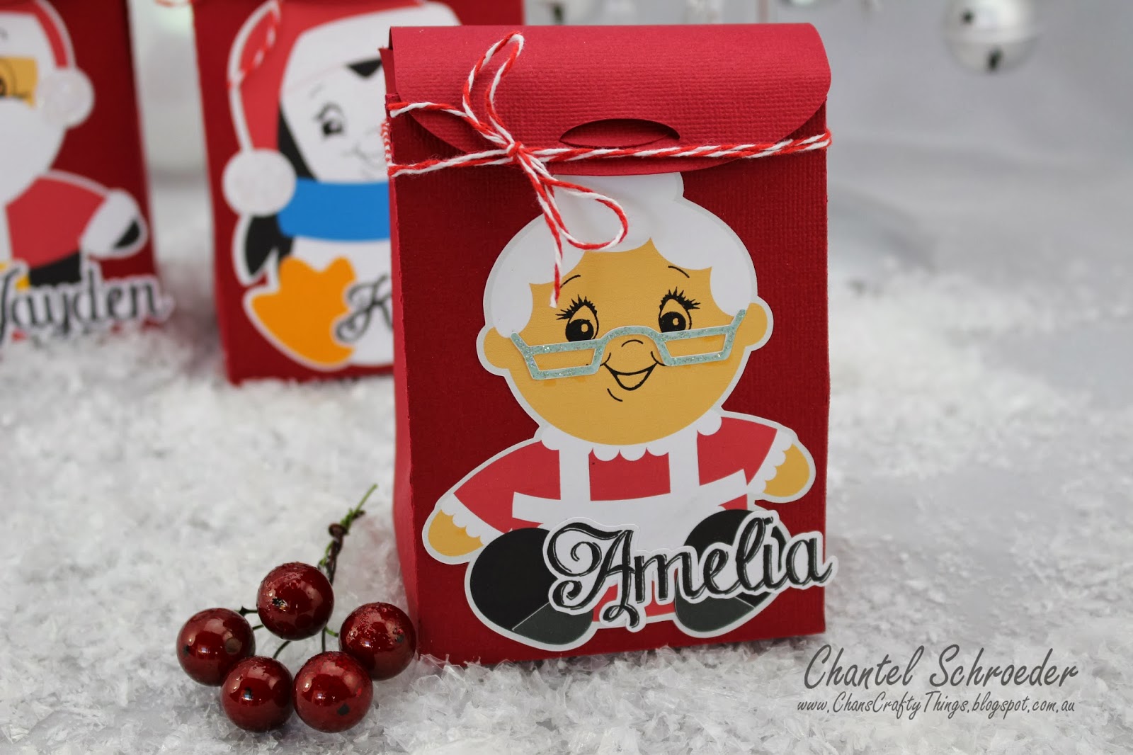 The gift bag cut file is from SVGCuts and so are the Christmas Cuddly Friends. I love these little guys - especially when their little faces are stamped with Peachy Keen stamps.