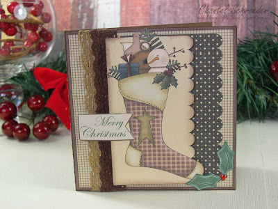 I used three of the cards in the Sweet Designer Cards and Envelopes SVG Collection from SVGCuts as the base for all my cards. I then filled the pieces with Rise and Shine Digital Scrapbook Paper and added different elements from the Never Enough Gingerbread Clip Art and Country Stockings Clip Art collections before I cut them out with my Cameo.