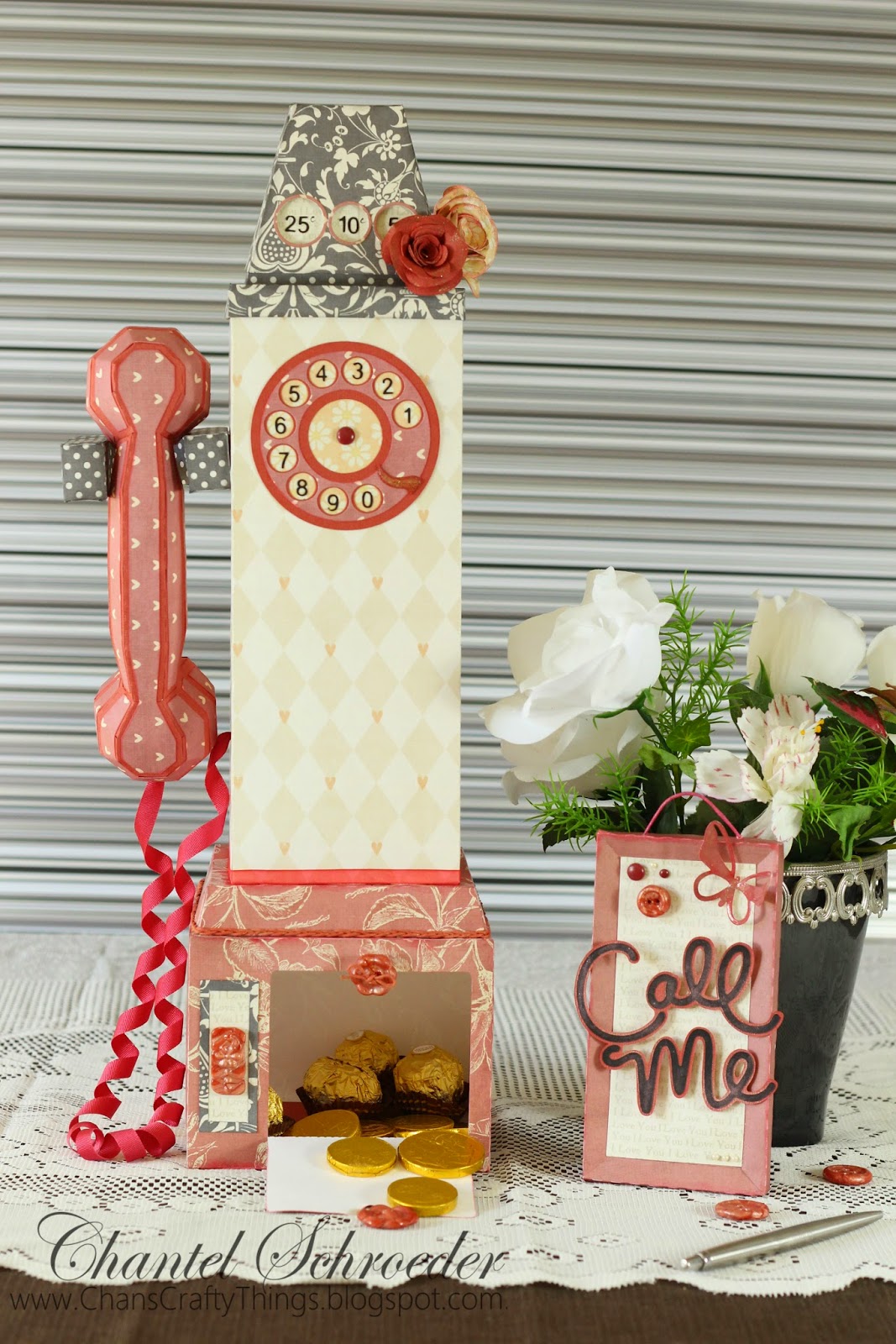The payphone itself has three different compartments to put lots of goodies in. Here, I added some chocolate coins along with a few of my personal favourites...For those of you who are interested, here's a list of all of the SVGCuts kits and collections I used: